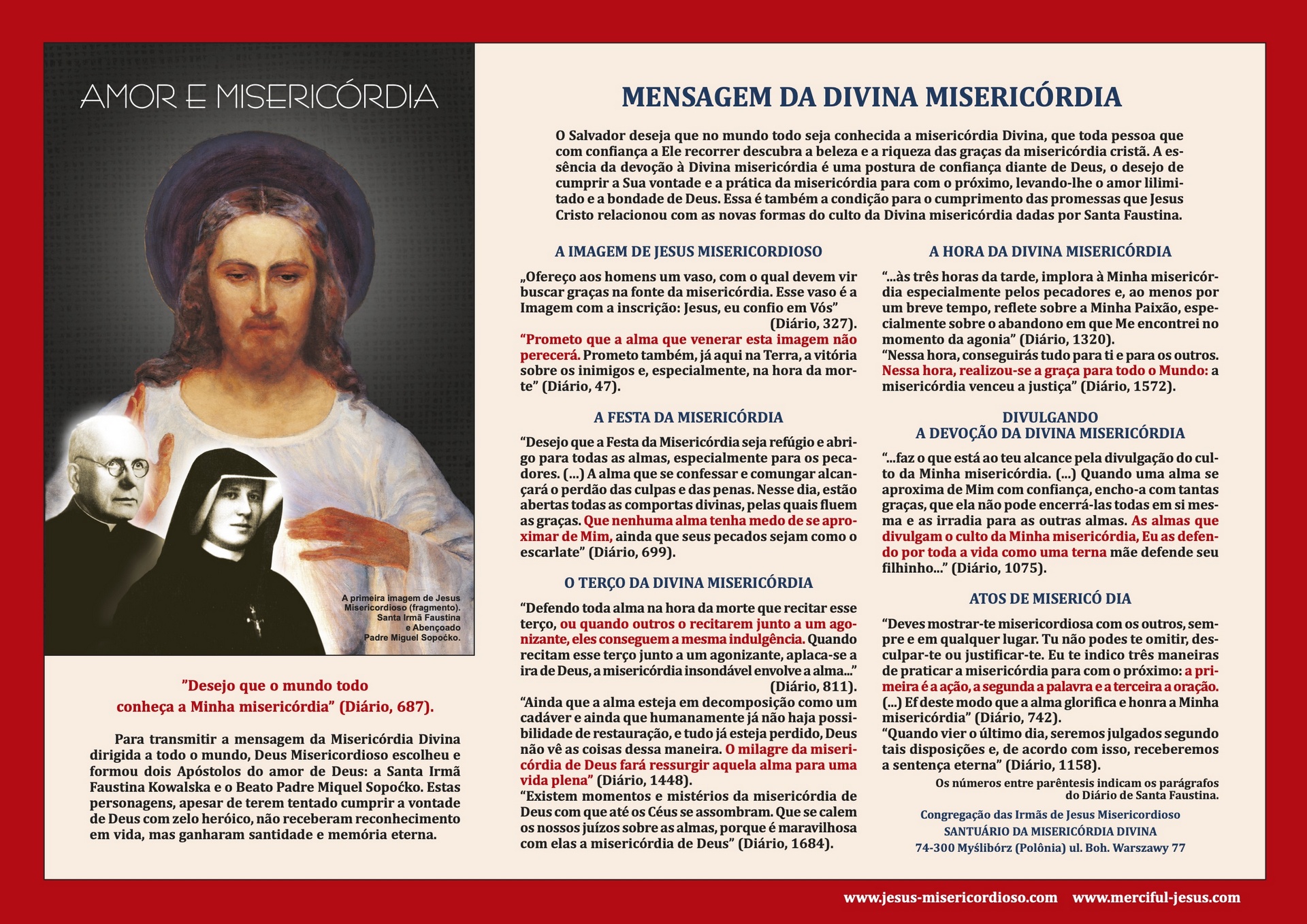 * Os números entre parêntesis indicam os parágrafos do Diário de Santa Faustina.